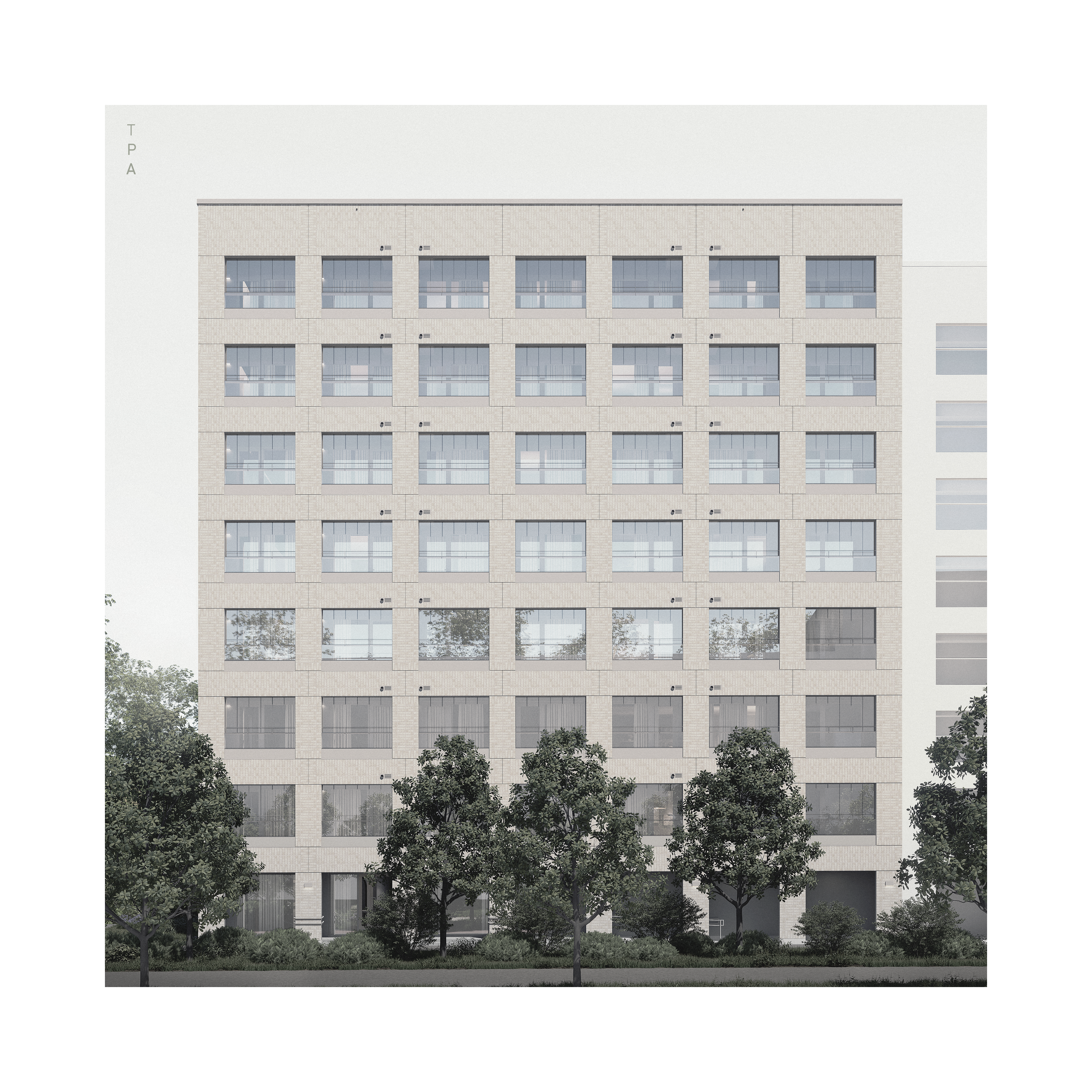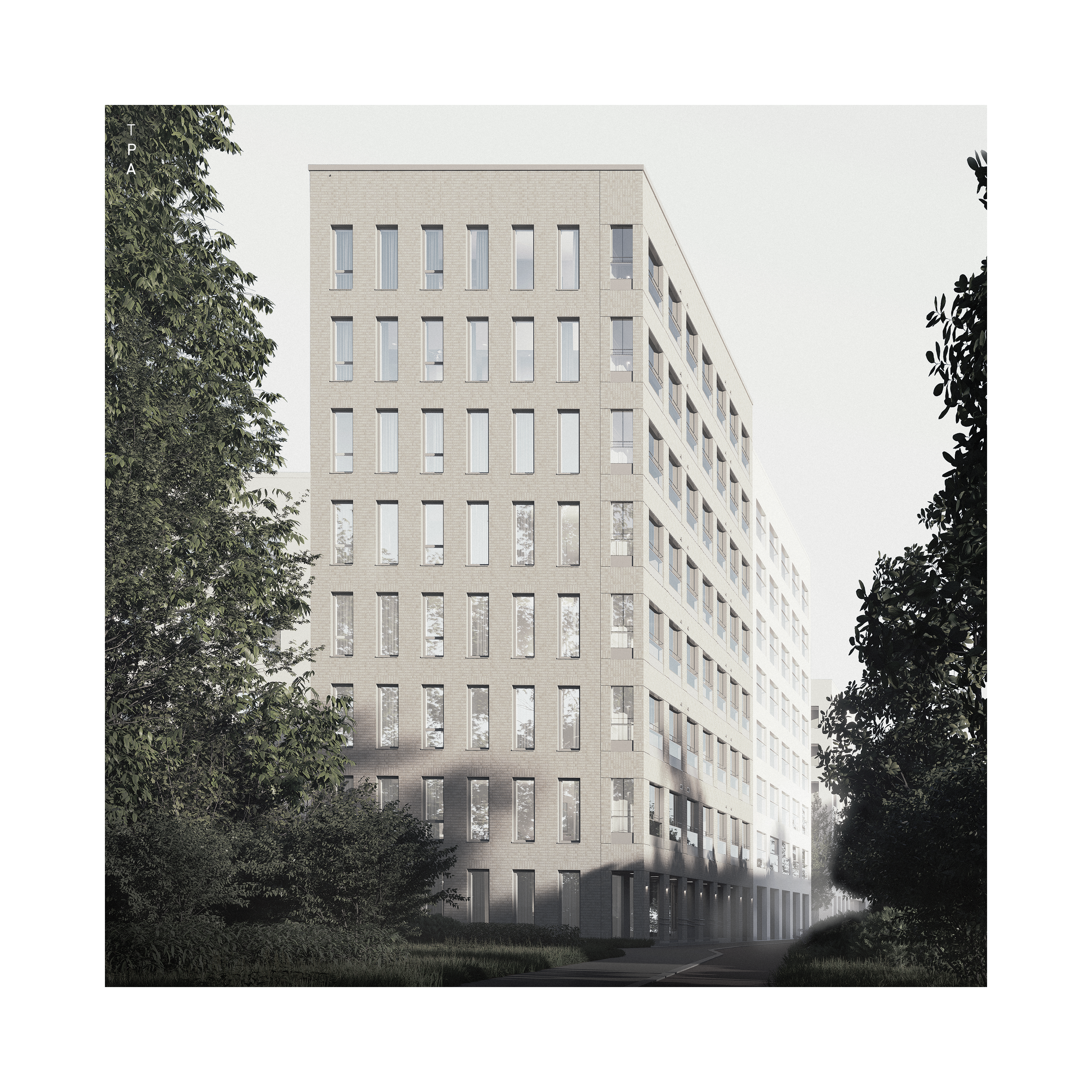 A housing study in Laajasalo, Helsinki, focusing on achieving maximal architectural effect with factory-built brick tiles on the balcony section.